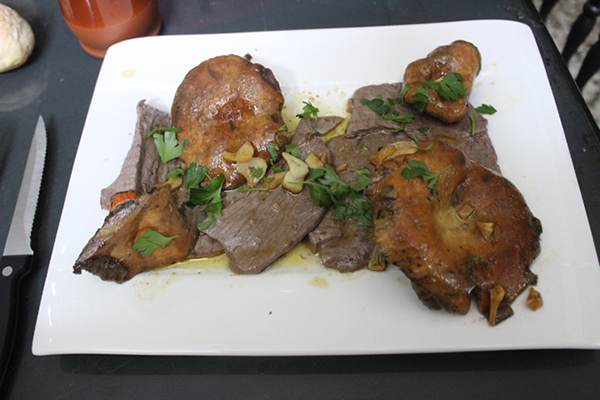 Aderezamos los filetes de ternera con sal, los sellamos a fuego fuerte, añadimos los robellones y bajamos el fuego, tapamos y dejamos cocer, hasta que estén a nuestro gusto de cocción.