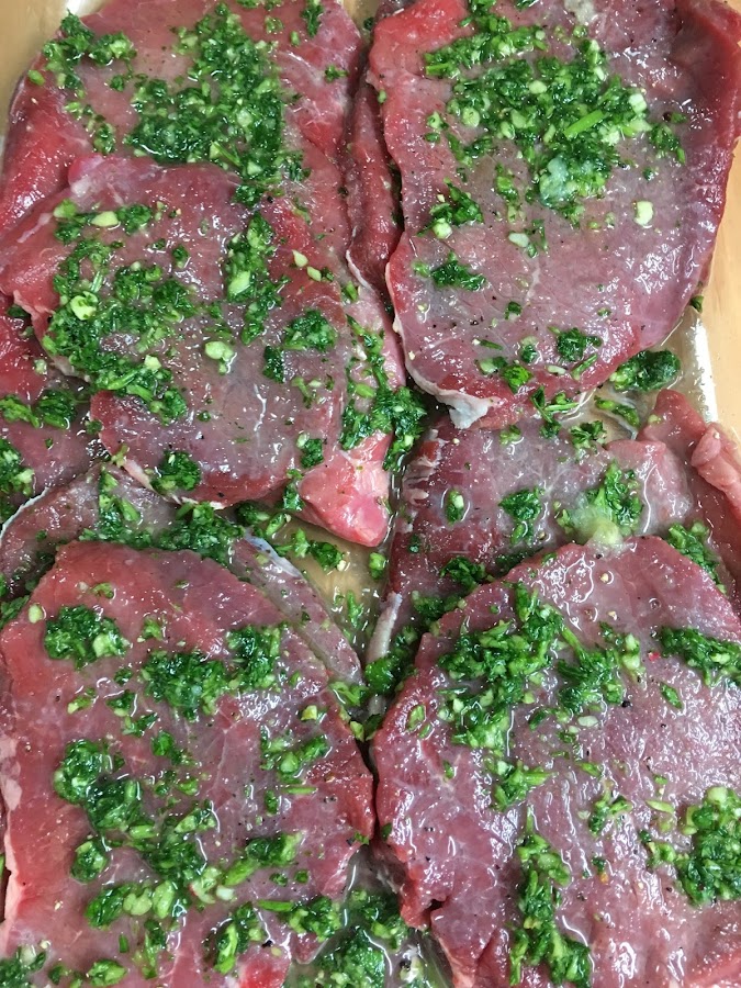 Es importante mantener el adobo de la carne unas cuantas horas. Yo los puse hoy temprano, pero me cuenta Pepa que su madre los dejaba incluso toda la noche a macerar.