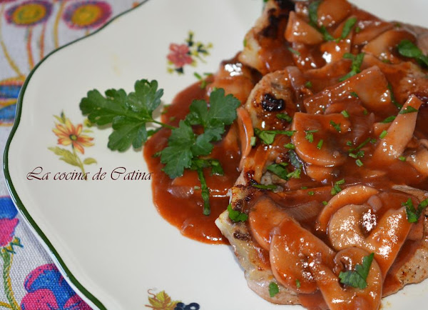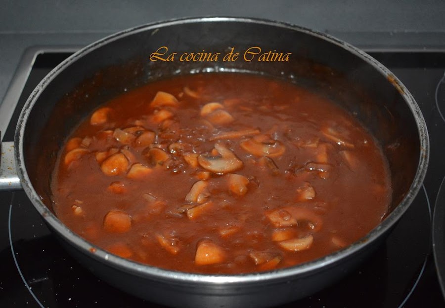 Los quitamos del fuego, los ponemos en una fuente de servir y echamos la salsa por encima. Espolvoreamos con perejil picado.