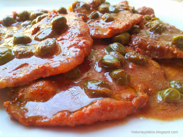 Retiramos los filetes del sartén, agregamos las alcaparras y dejamos cocinar por 10 minutos hasta que la salsa se haya espesado. (a este punto si se desea se puede agregar la crema de cocina) Unimos la carne a la salsa justo el tiempo de incorporar el todo y servimos.