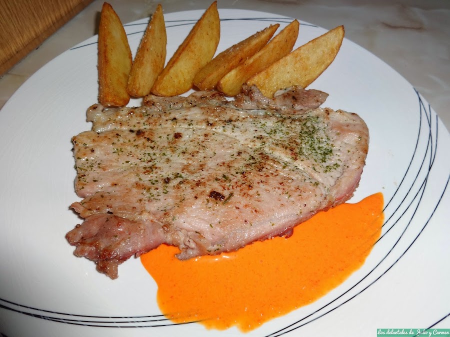 Bueno, pues en esta receta que tenéis ante vosotros, vamos a cambiar básicamente dos puntos: añadiremos una salsa a la carne y prepararemos las patatas de una forma diferente. Fritas, pero diferentes.