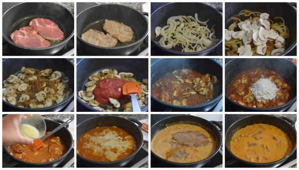 Elaboración de los filetes de cerdo en salsa con champiñones: