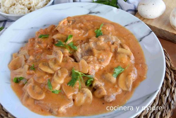 Filetes de cerdo en salsa con champiñones