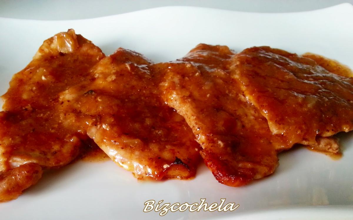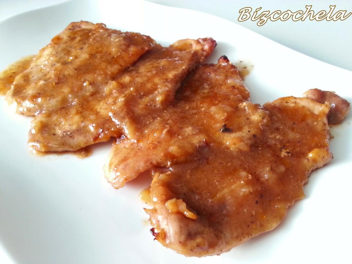 En realidad lo que he hecho ha sido versionar la receta de PECHUGA FÁCIL, pero en vez de pollo le he puesto filetes de lomo y en vez de refresco de naranja le he puesto coca cola.