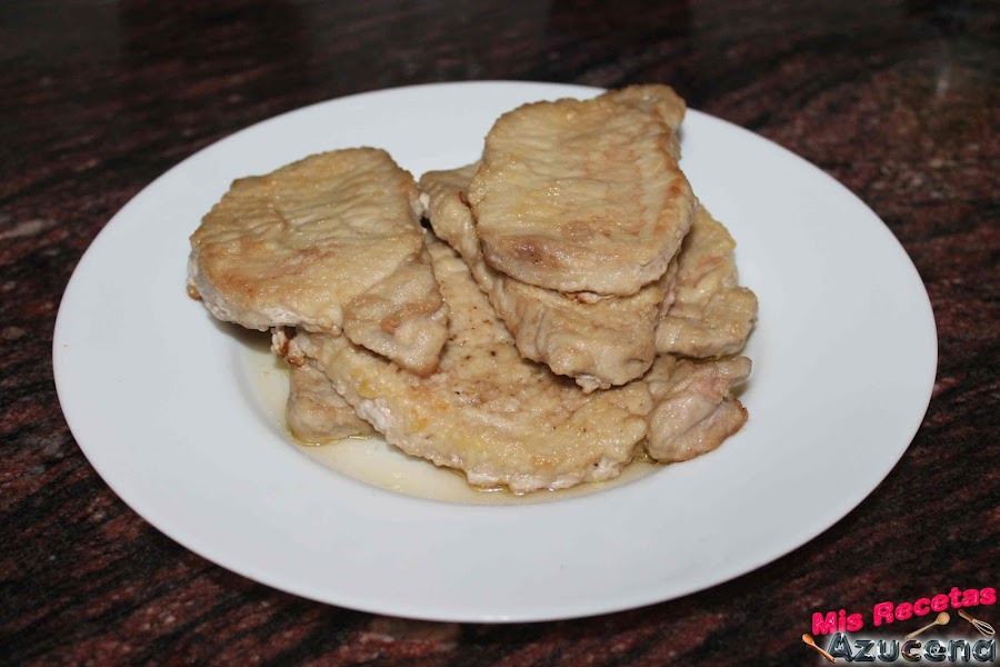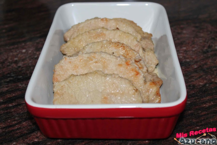Lo primero que haremos seca coger el lomo y quitarle toda la grasa que podamos, una vez lo tengamos limpio sacaremos 6 filetes del mismo grosor, salpimentamos.
