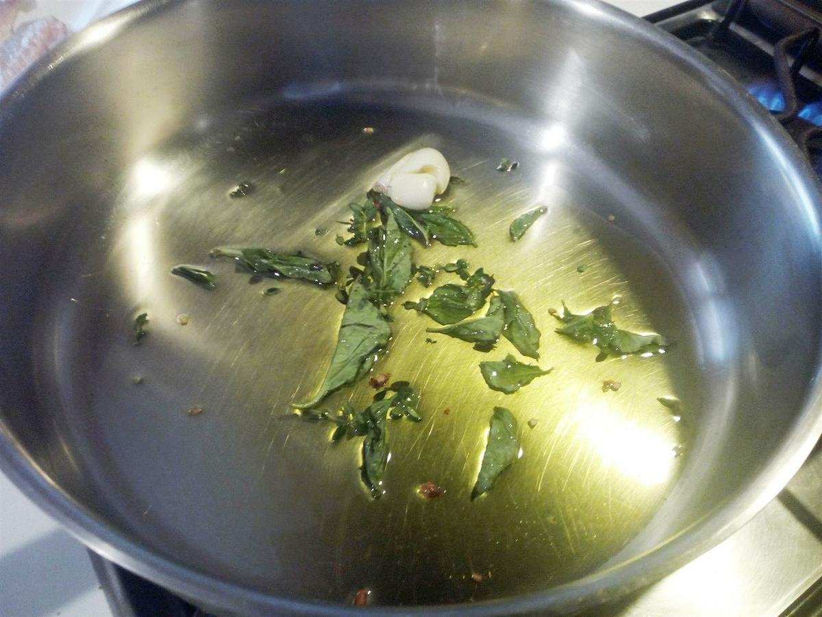 Poner un fondo de aceite, ajo (si os gusta, picante también) y albahaca.