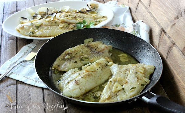 Cuando haya hervido un minuto añadimos los filetes y dejamos que se hagan unos minutos por cada lado. Los servimos acompañados de almejas al ajillo o con verdura hervida, patatas fritas... lo que más os guste.