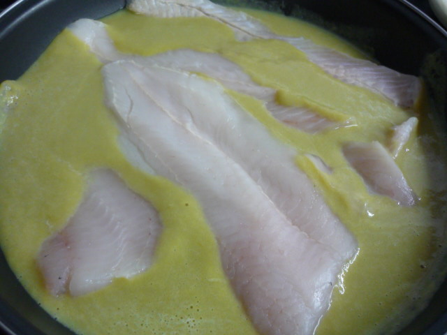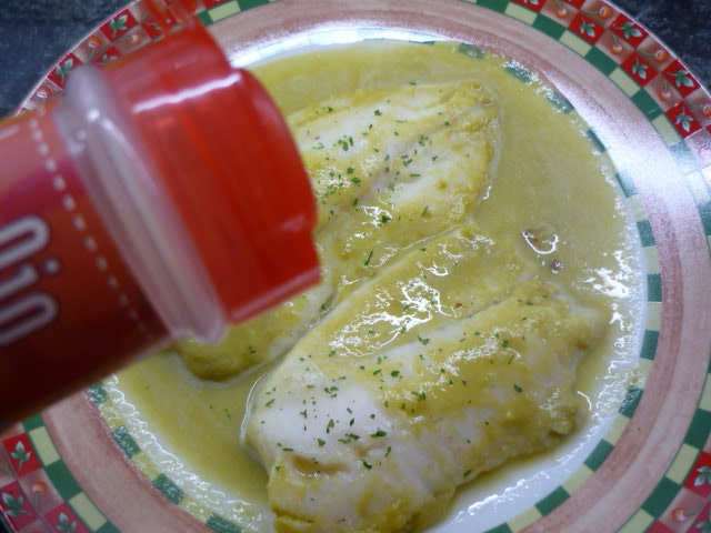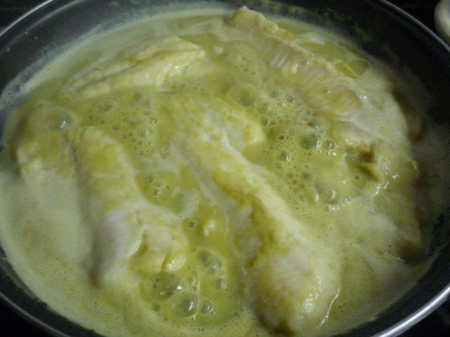 2.- Ponemos la salsa en una sartén y agregamos la merluza. Dejamos cocer a fuego medio durante 15 minutos. Los 5 primeros con tapadera. Esperamos a que reduzca y espese un poco la salsa. No es necesario dar la vuelta a la merluza.