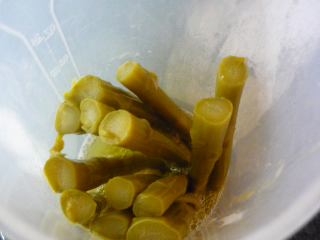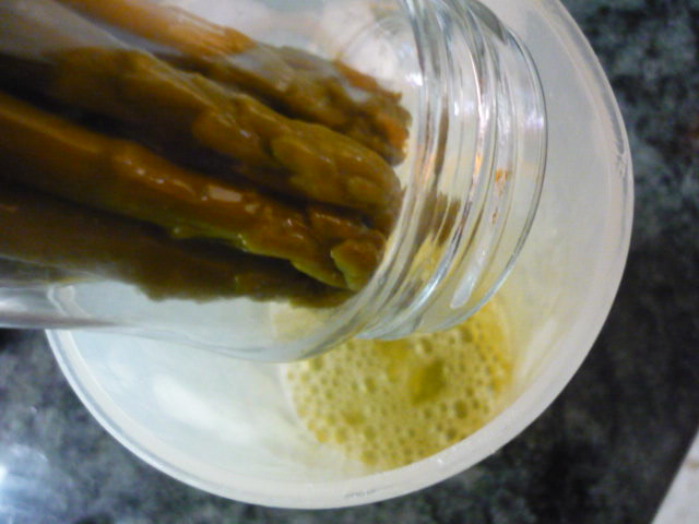 1.- Preparamos la salsa batiendo los espárragos junto con su caldo y la leche, con un poco de sal.
