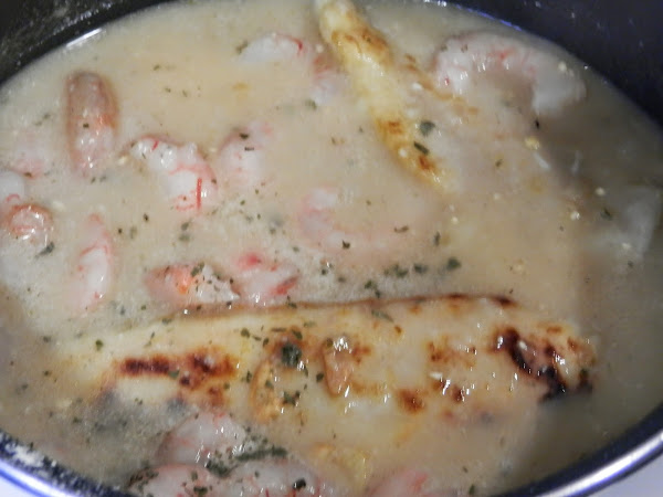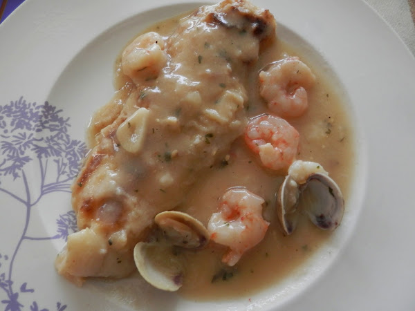 Dejamos cocer durante unos cinco minutos más para que se cuezan las gambas y se abran las almejas.