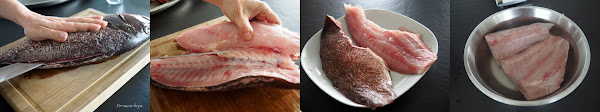 El proceso para filetear el pescado podemos hacerlo en casa o bien que nos lo hagan en la pescadería. El resultado son dos filetes grandes, limpios de escamas y espinas. De cada uno de estos salen dos piezas (de aproximadamente 180 g).