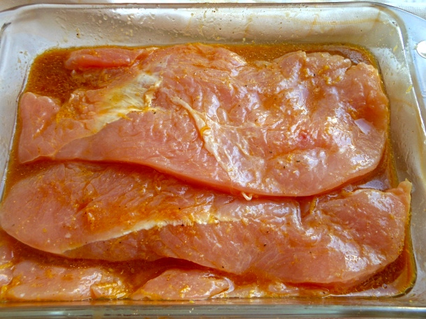 Tras esto mezcla bien e introduce los filetes de pavo en ella; deja macerar los filetes en esta mezcla unas dos horas bien tapados con film transparente en la nevera.