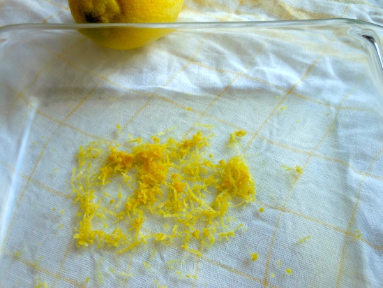 Comienza lavando bien el limón bajo el chorro del agua fría del grifo, sécalo bien con un trozo de papel de cocina y rállalo evitando coger de su parte blanca.