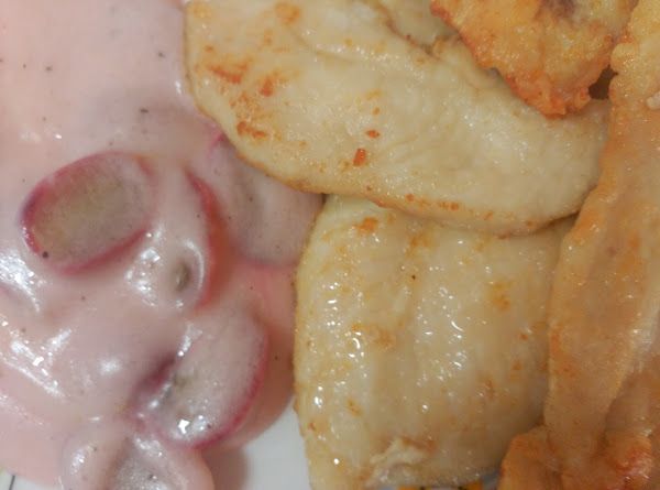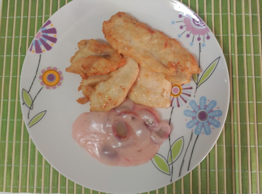 Limpiar los filetes de pollo y salpimentar. Enharina los filetes y ponlos en una sartén con aceite de oliva. Fríe hasta que se doren y retira en un papel absorbente.