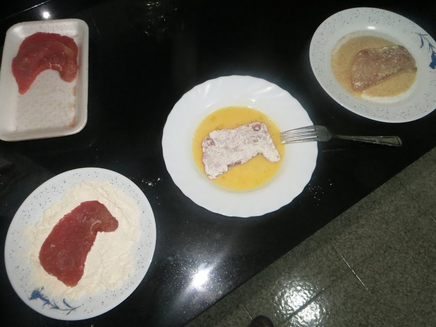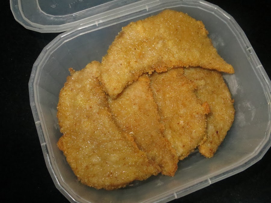 Si son un poco gordos nuestros filetes, los aplastamos, salpimentamos y los pasamos por harina, huevo y pan rallado. Ahora colocamos nuestro aceite de oliva virgen extra a calentar y cuando estén calientes los vamos friendo en tandas, los sacamos dejamos encima del papel absorbente y luego cuando se enfríen un poco los pasamos al taper donde vayamos a llevarnos nuestra comida. En este caso no os he puesto cantidades porque dependerá de los que vayáis a comer, normalmente calcular dos o tres filetes por persona aunque dependerá del tamaño y si lo acompañáis de una fresquita ensalada ya tenéis vuestro picnic listo.
