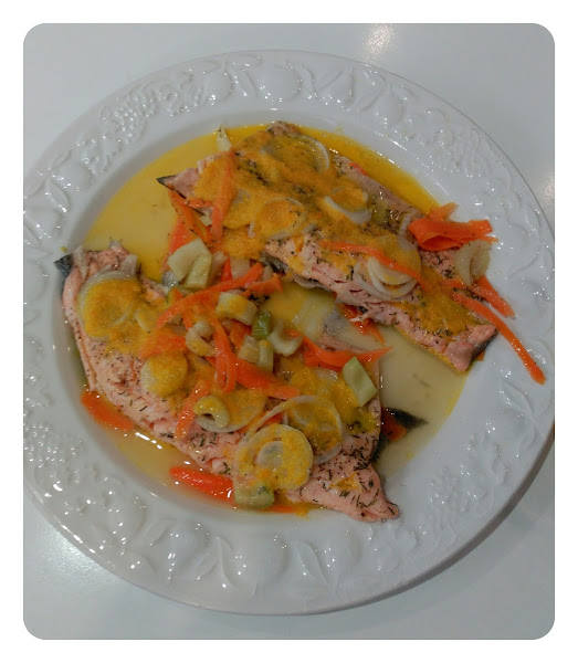 3.- Añade 50 g. vino y el agua, situa el varoma en su posicion y programa 15 min/varoma/vel. cuchara. Retira el varoma y sirve los papillotes en los platos.