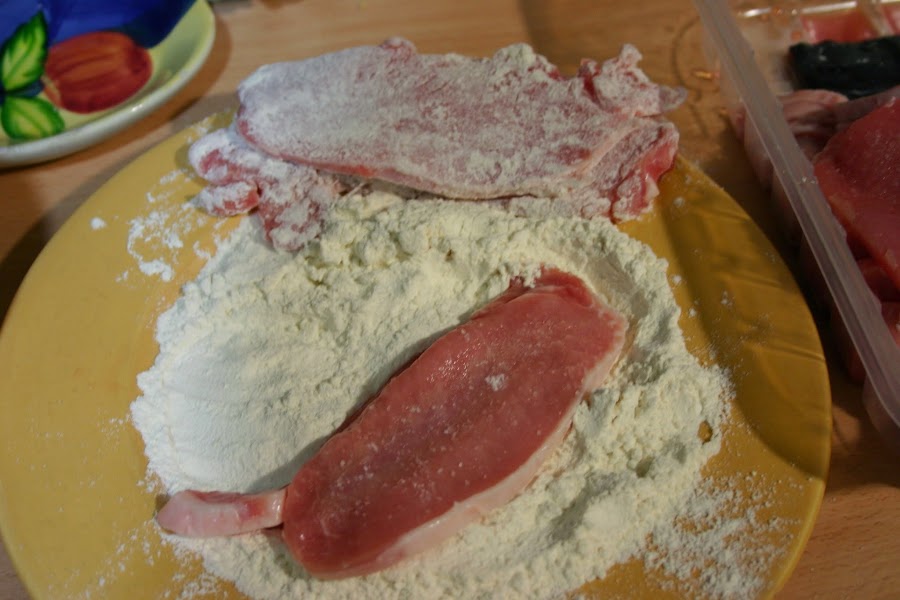 lo primero que vamos a hacer es en un plato es echar harina, salpimentamos los filetes y los enharinamos