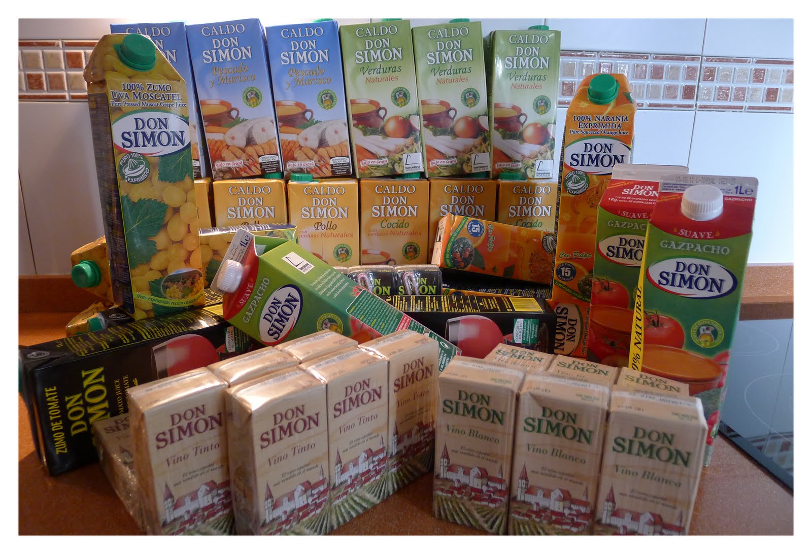 tambien queria hablaros de garcia carrion y don simon,que tuvo la gentileza de mandarme hace unos dias ,tan estupendo lote de sus productos,como podeis ver,un buen variado de sus zumos,caldos y vinos.