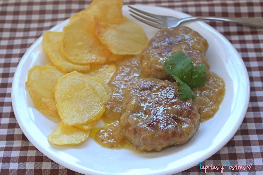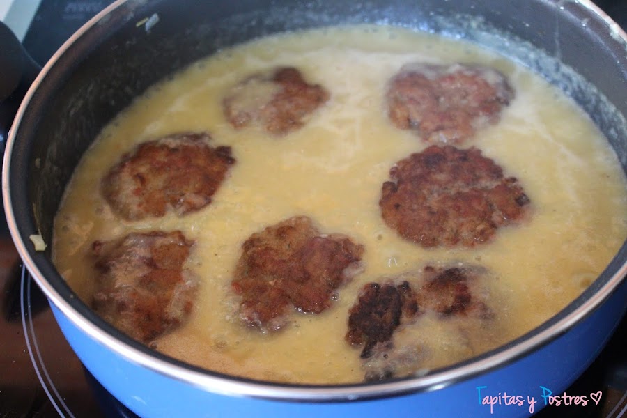 Pensé hacer algo distinto para aprovecharla y preparé filetes rusos en salsa. Los filetes rusos no dejan de ser unas hamburguesas que se guisan en alguna salsa. Quedan muy ricos y jugosos y es una manera estupenda de comer carne picada.
