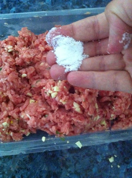 En un plato, pondremos la carne con un huevo y mezclaremos bien.