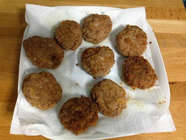 Con la ayuda de una cuchara sopera, cogeremos pequeñas porciones de carne, y les daremos forma ovalada con las manos. Para seguidamente, hacer una pequeña hendidura con los dedos en el centro de cada filete.