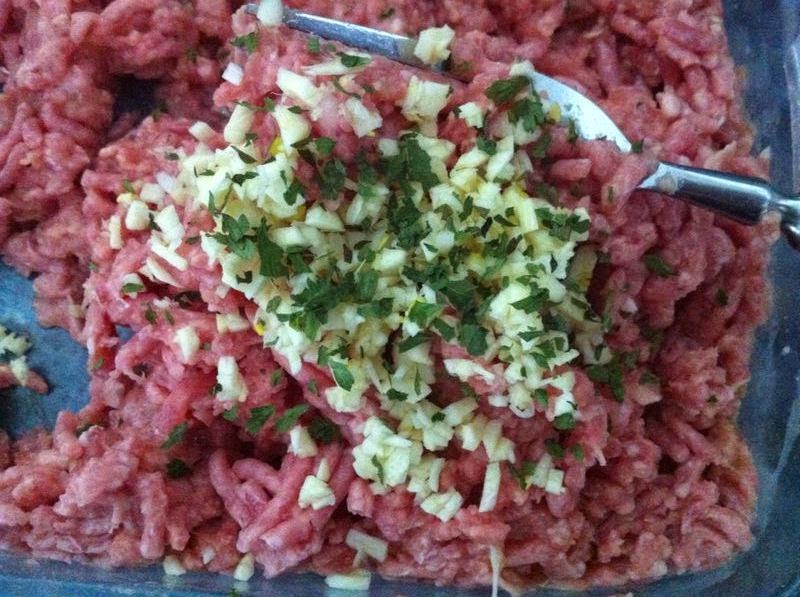 - una bandeja de carne picada mixta de cerdo y vacuno.