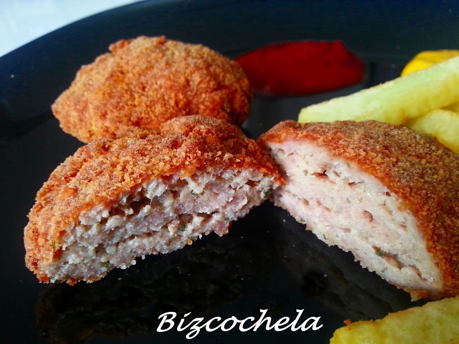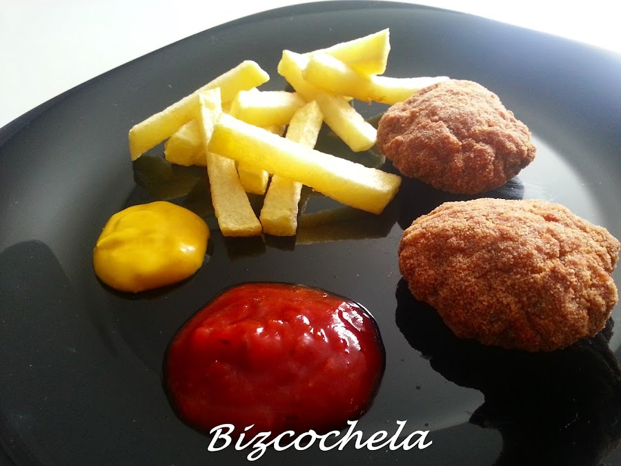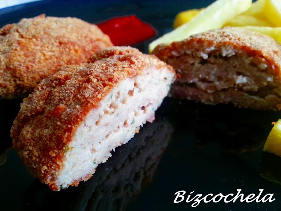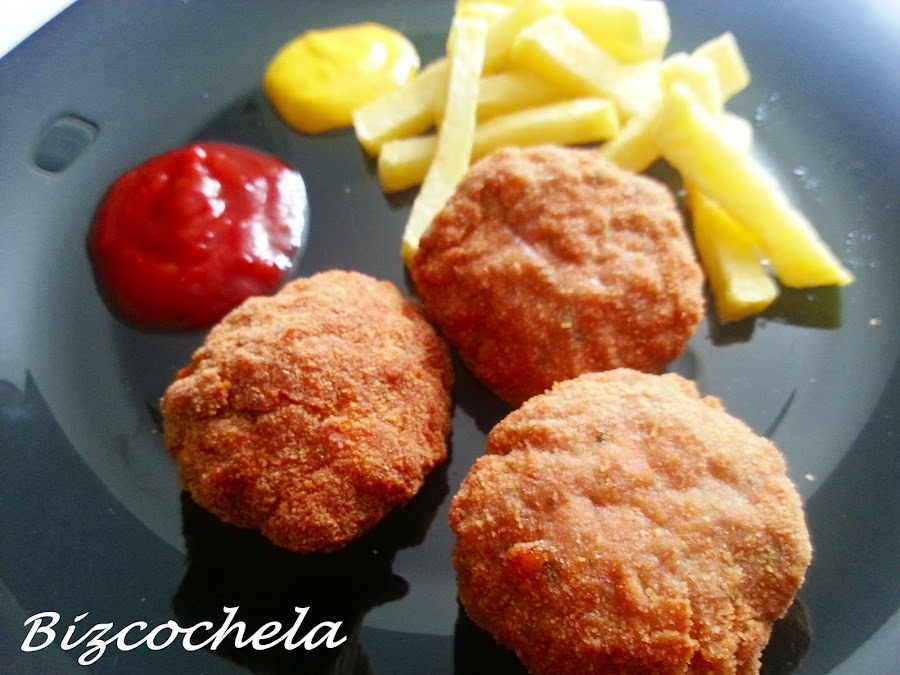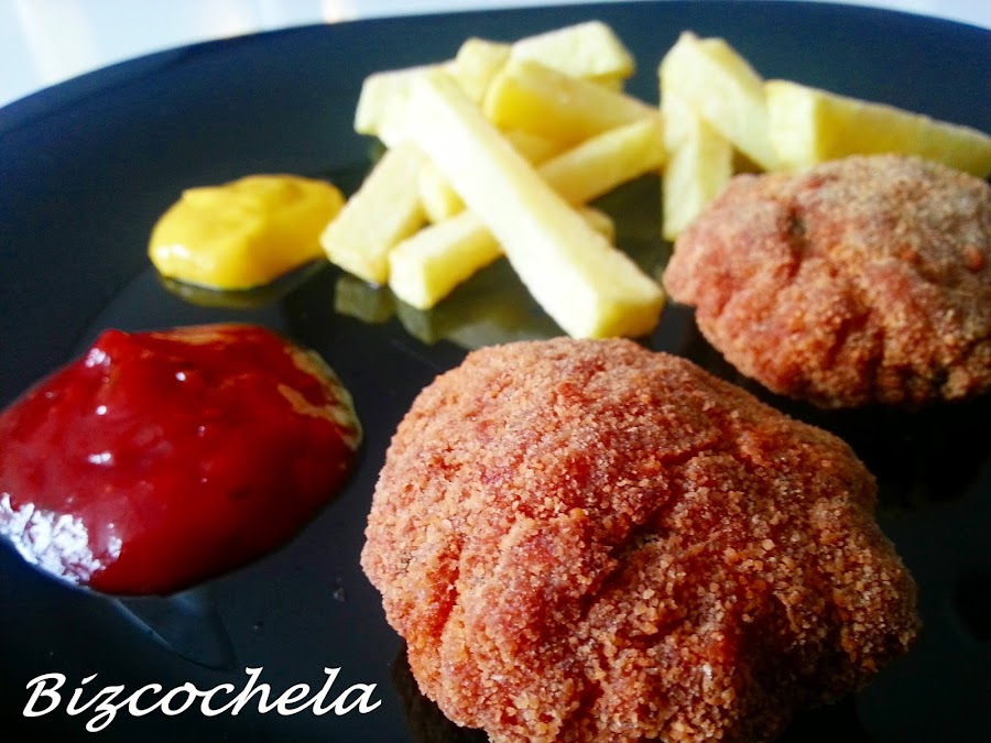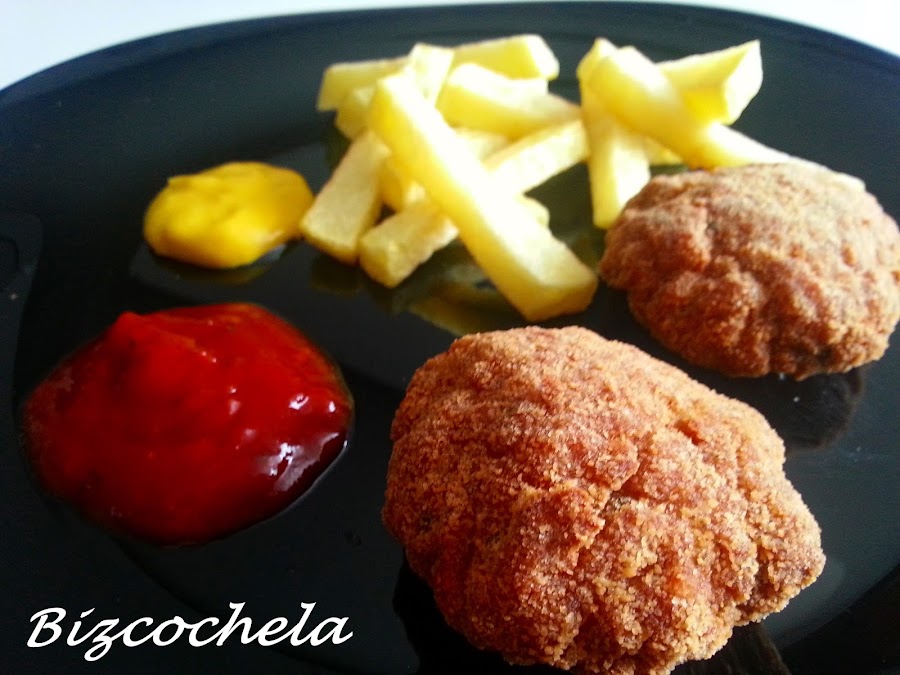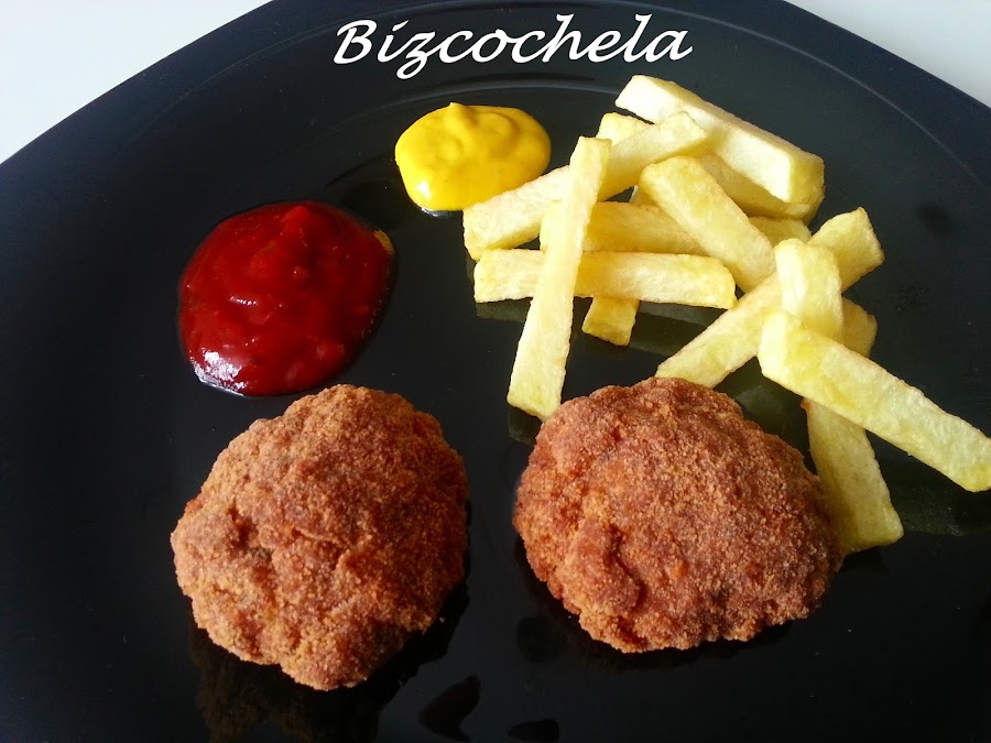Prácticamente son como albóndigas aplastadas y empanadas, súper fáciles y quedan estupendos, ya veréis....
