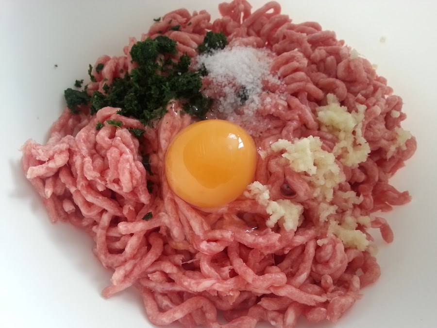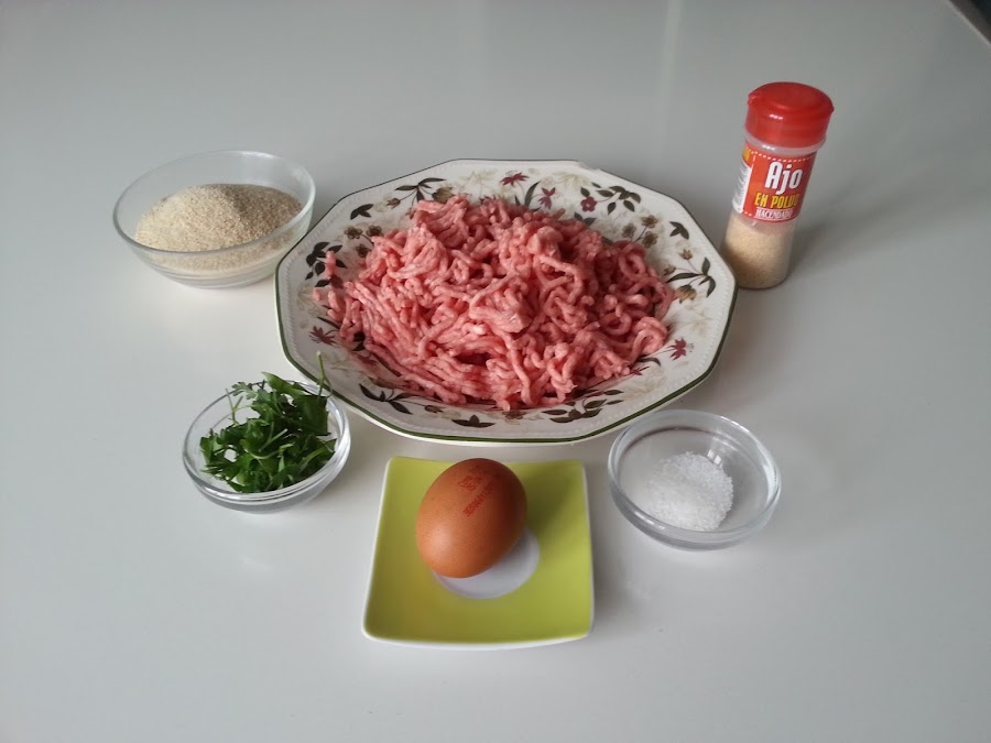 Si bien es cierto que la receta original es sólo con carne de ternera, yo los hago con mezcla, mitad cerdo, mitad ternera, para que queden más jugosos por dentro, que la ternera suele quedar más "sequerona".