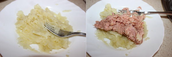 Elaboración:Cocemos las patatas con agua y sal hasta que estén tiernas, las escurrimos y las trituramos con un tenedor.