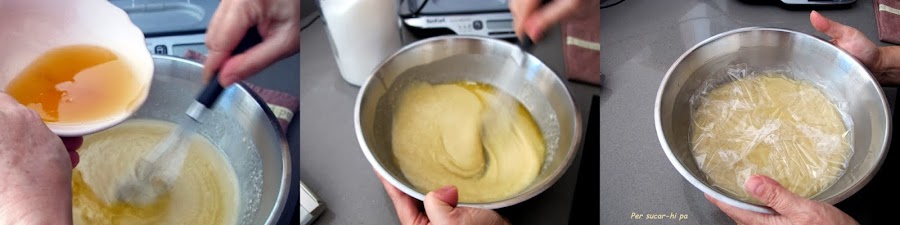 Dejar enfriar en la nevera, mínimo una hora. Cubrir previamente la superficie con film plástico para evitar que se seque y haga costra.