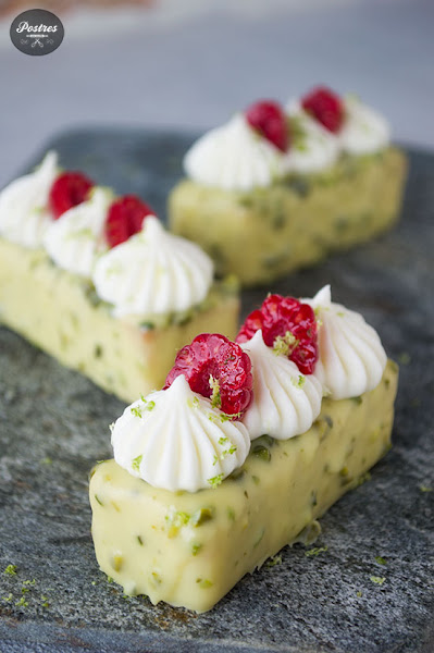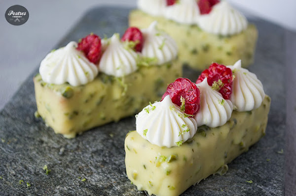 Pero antes os deleitare con algunas recetas que tengo entre manos, la que os traigo hoy es sencillita y elegante, se trata de un financier de coco y lima con semillas de chía, bañado en chocolate blanco con pistachos troceados y una crema de marc de cavasi, parece complicado dicho así de golpe jejeje pero que va, es mucho más sencillo de preparar de lo que parece, os animáis?