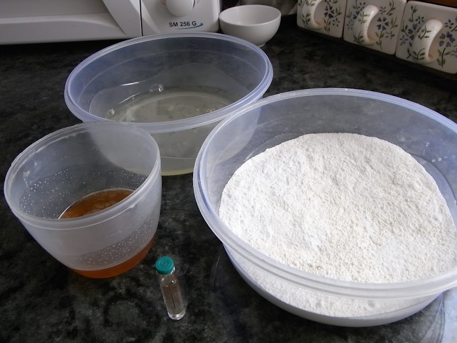 Ahora se mezclan los ingredientes secos con las claras, cuando está todo bien integrado se echa la mantequilla en un hilo y se va incorporando y la esencia de almendra amarga.