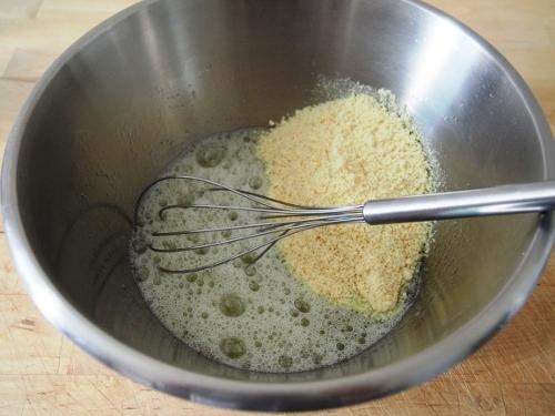 Ya verán que la receta es muy fácil y rápida de hacer, solo se trata de ir incorporando los ingredientes de a poco y hornear!. Comenzaremos por integrar las almendras en polvo con las claras de huevo. Ojo! solo incorporar, NO batir.