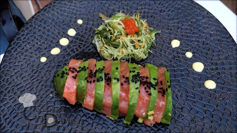 "Salmón marinado y cítricos, ensalada vietnamita y aguacate"