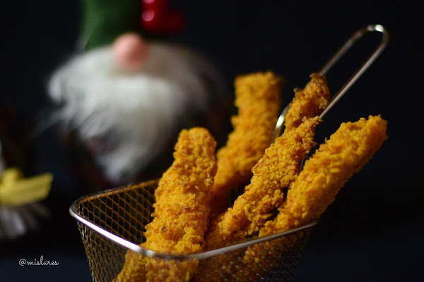 1. Cortamos la pechuga cortando cada una de ellas en 3 filetes y después en tiras.