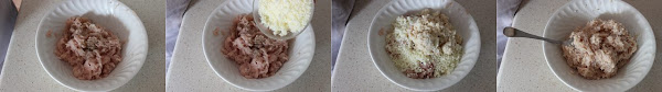 En un bol ponemos la carne junto con el pan remojado en la leche, el queso rallado, sal al gusto y pimienta molida al gusto.