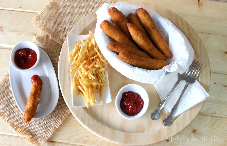 Van empanados en una mezcla de huevo y pan rallado y generalmente se sirven fritos , aunque también podemos ponerlos al horno para evitar un poco de grasa. Se sirven acompañados de alguna salsa, bien sea ketchup, mostaza, barbacoa...