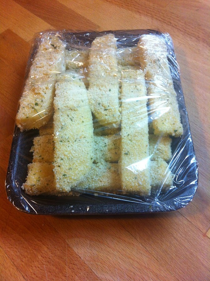 aceite para freirSe cortan las lonchas gordas de queso en varitas o palitos como de un dedo de grosor (de ahí el nombre). Se pasan por harina, huevo batido y, por último por pan rallado.