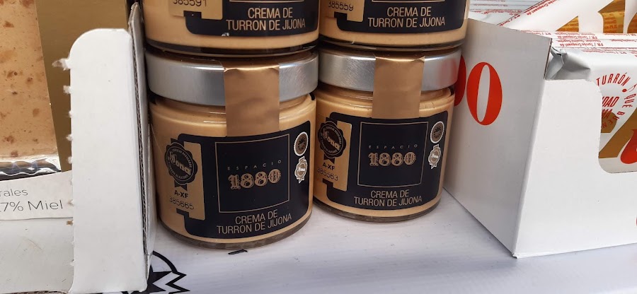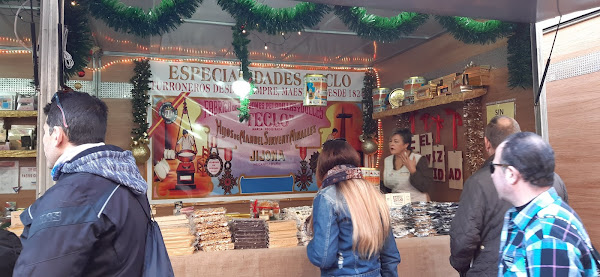Me resultó novedoso el stand dispensador de turrón, situado en la calle que lleva a la feria. Puede que estuviera el año pasado, pero con la gente que había no lo vi. Y más adelante me encontré con que una tienda personaliza la tableta de turrón con tu logo o fotografía. Me parece muy original, sobre todo para un regalo, ¿no os parece?