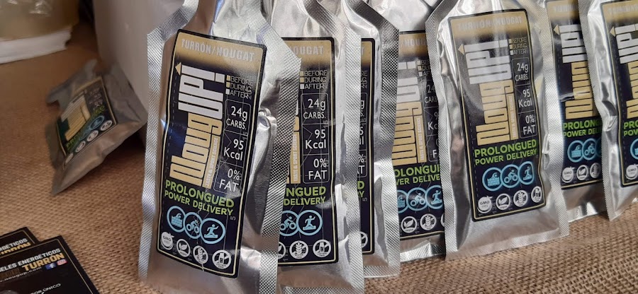 Entre puesto y puesto encontramos el belén más dulce de todo el paseo, hecho con turrón de guirlache y mazapán. A continuación encontramos, en el stand de los turrones sin azúcar, los geles con sabor a turrón para corredores de maratones, triatlones. Una buena dulce manera de coger fuerzas ¿verdad?