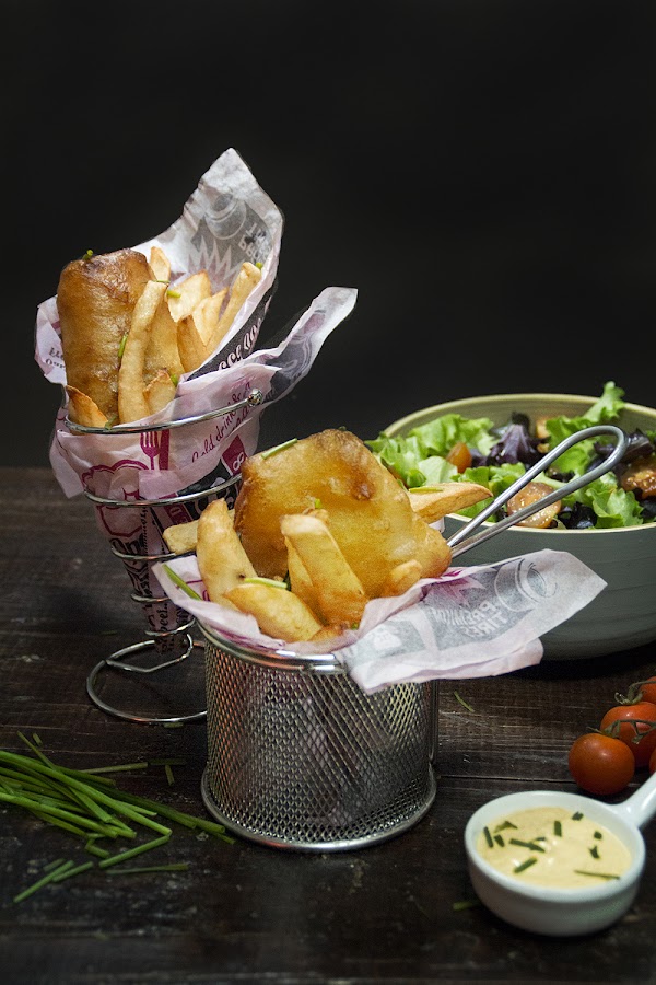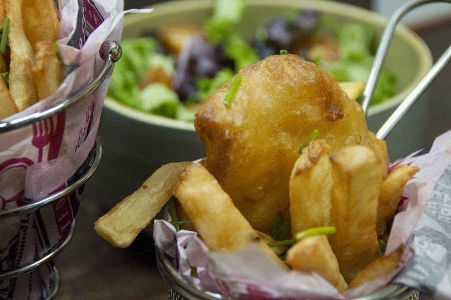 Recetas de fish and chips hay muchas, pero sin duda alguna desde que la probé, no hago otra más que esta con un toque de miel que la hace más irresistible aún. A la hora de hacerla hay que tener cuidado ya que esta pasta se dora enseguida y hay que estar muy atento. Las chips, yo las hago en dos veces y sólo fritas, aunque también se pueden cocer previamente un poco.
