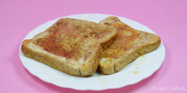 Mezclaremos en un plato hondo las claras con la proteína - si la usáis - y la canela en polvo. Si la canela no os gusta, podéis sustituirla por esencia de vainilla. Una vez tengamos la mezcla, ponemos encima una rebanada y con una cuchara, vamos añadiendo leche de forma que empapemos ligeramente la rebanada por completo. Una vez empapada le damos la vuelta en el plato para cubrirla con la mezcla de claras.