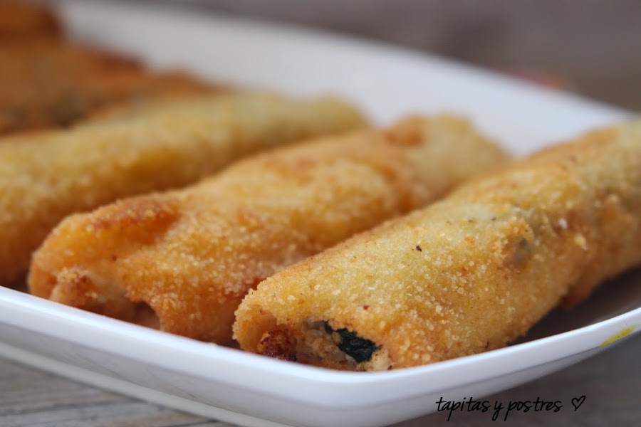 Yo he preparado la receta en base a la cantidad de espinacas que tenía, y me han salido seis flamenquines, Si necesitáis más, deberéis doblar las cantidades de todo.