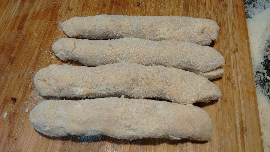 Una vez enrollados los pasamos por pan, huevo y otra vez pan.
