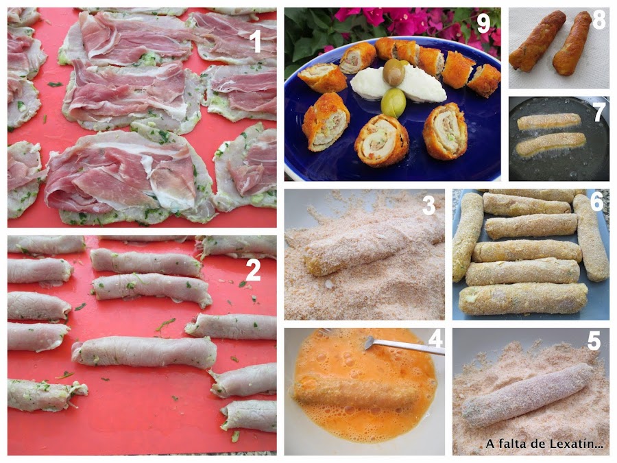 Y disfrutando de la arena y el mar me acordé de estos flamenquines que siempre pedimos en algún chiringuito en verano y de que tenía esta receta guardada de hace tiempo ... mi obsesión por la comida empieza a ser patológica, jajaja