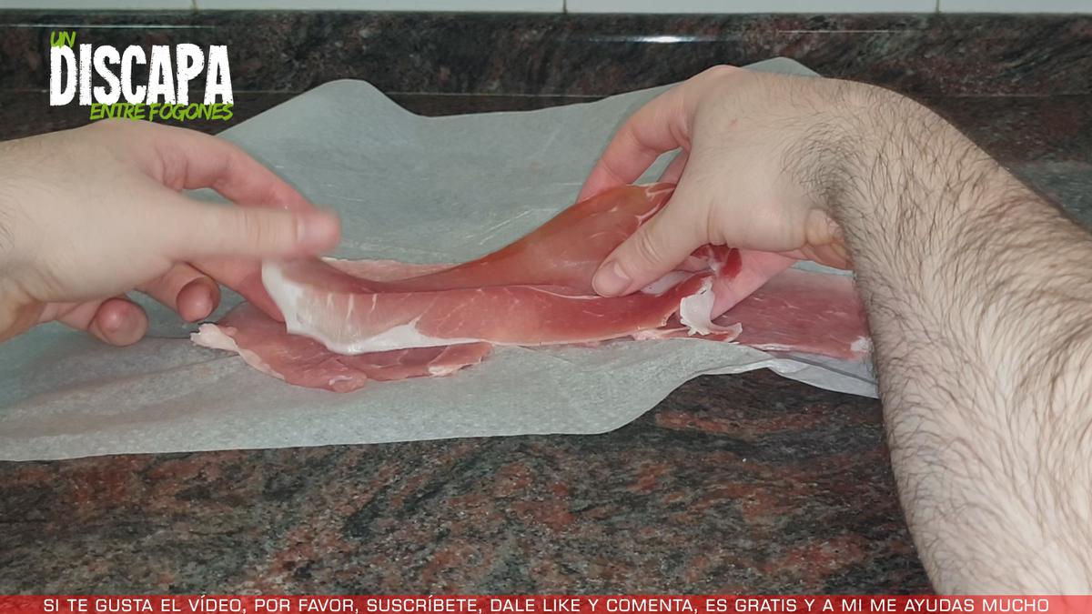 2Ahora, ponemos un poco de jamón serrano sobre el filete.