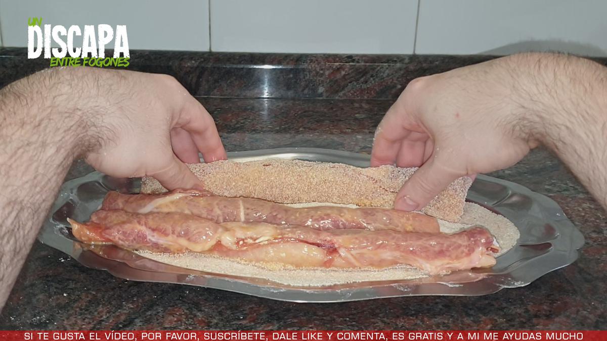1Aquí tengo lomo de cerdo cortado a lo largo, le añadimos pizca de sal.