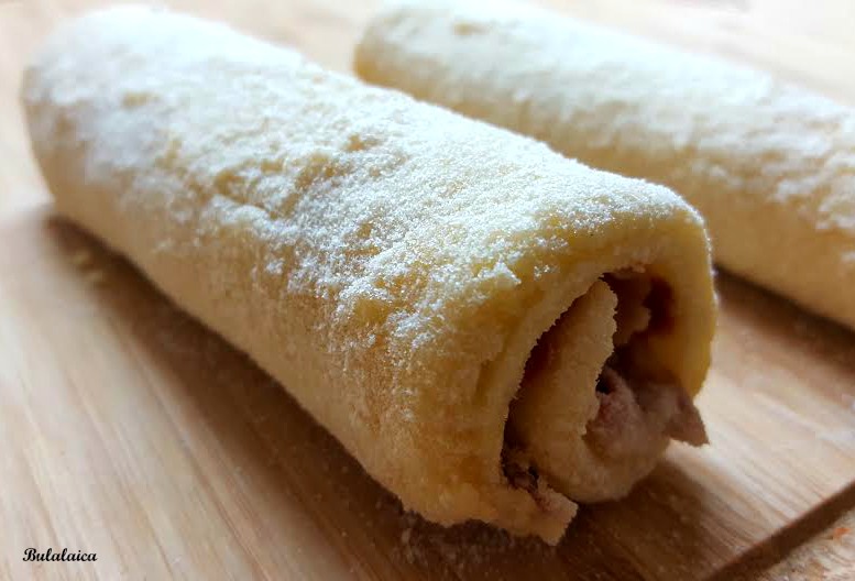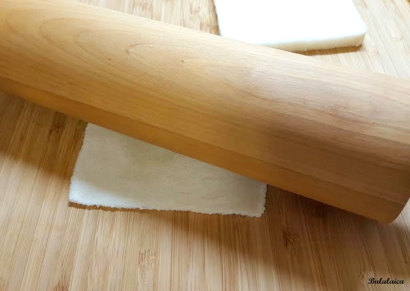 1. Con un rodillo aplanamos las rebanadas de pan de molde.