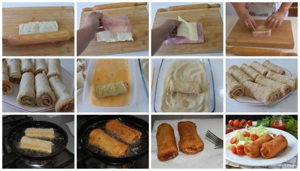 Flamenquines de pan de molde, jamón y queso