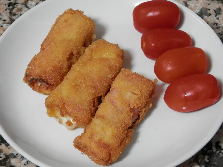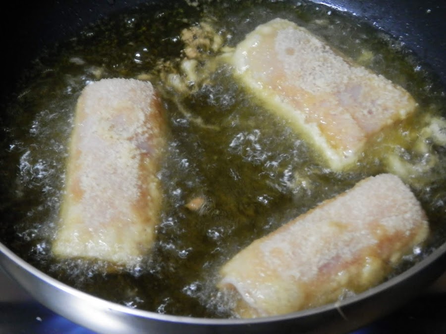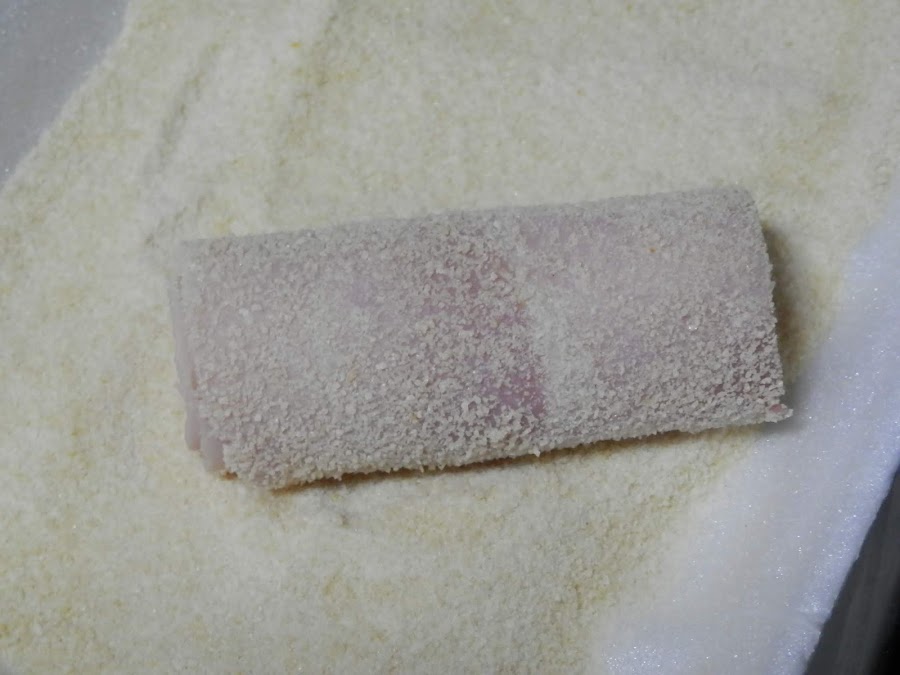 Pasa el "rollito" por harina, huevo batido y pan rallado.